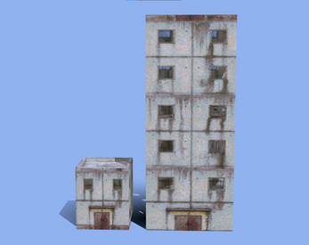 A distressed PSX-style tower and small block pair, perfect for retro city ruins, horror maps, and lowpoly environments and other stuff :(