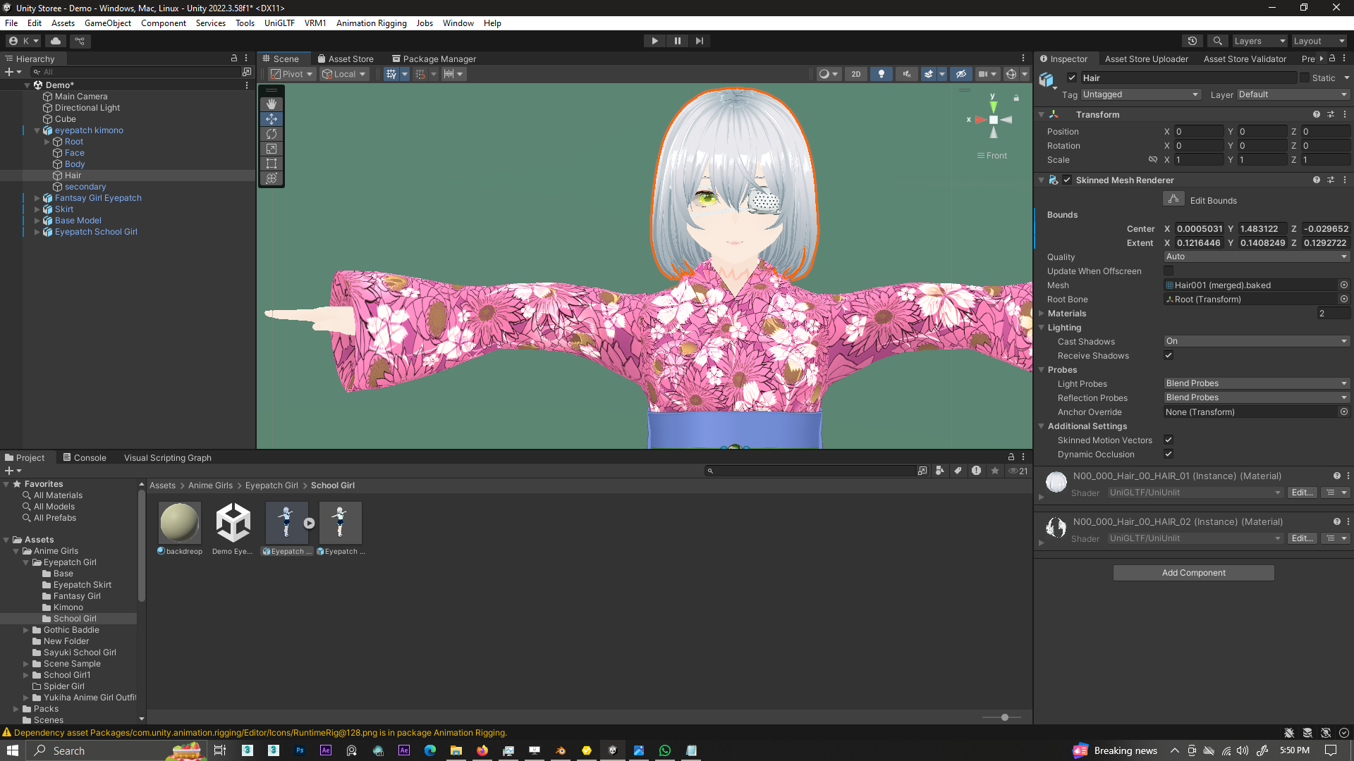 This is a Fully Rigged Model packed with Facial Expression Sliders For Blender and unity (simply drag the prefab in your scene, Compiled with Hair, cloth physics, and customizable facial expressions)