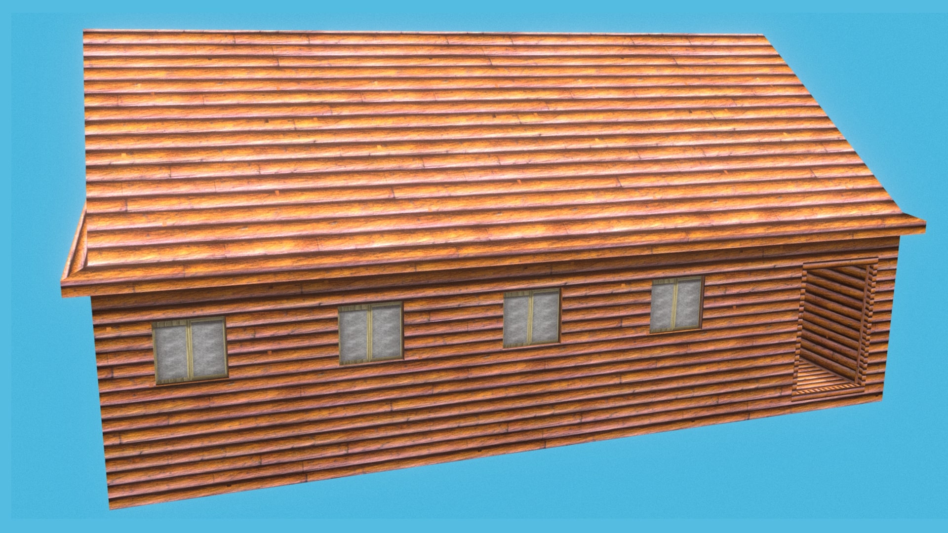 A PSX-style log cabin with a simple lowpoly shape and retro textures. Perfect for forest scenes, survival maps, rural environments, or atmospheric background structures with a classic retro look.